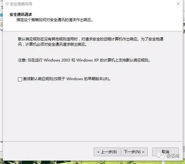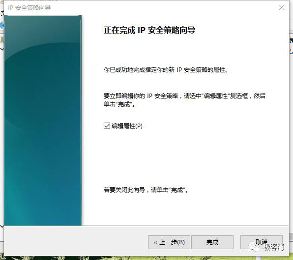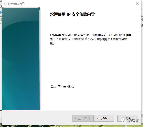 5、在跳出的“IP安全策略向?qū)А爸杏益I