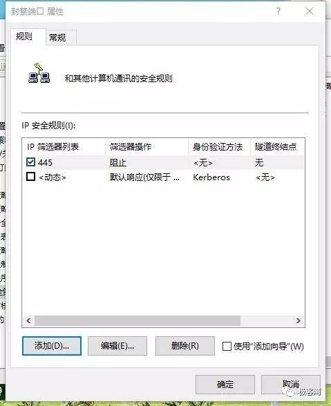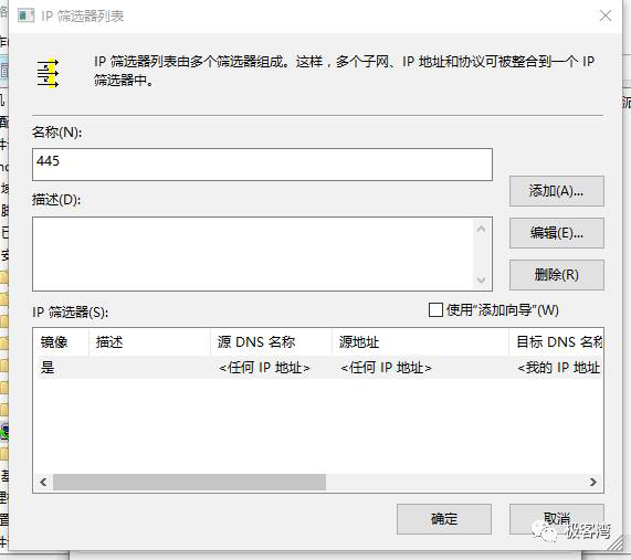 11、在IP篩選器列表窗口中,單擊右側(cè)的添加按鈕,需要注意的是這里也不要點(diǎn)擊右下角的使用添加向?qū)А?/span>