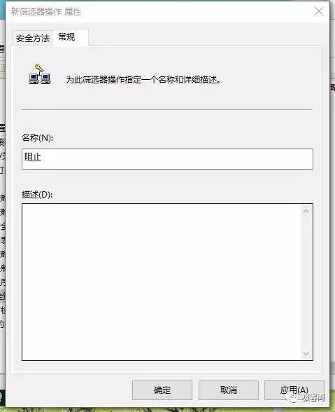 17、在新篩選器操作屬性中,選擇“阻止”,并切換到常規(guī)選項(xiàng)卡,將名稱改為阻止。