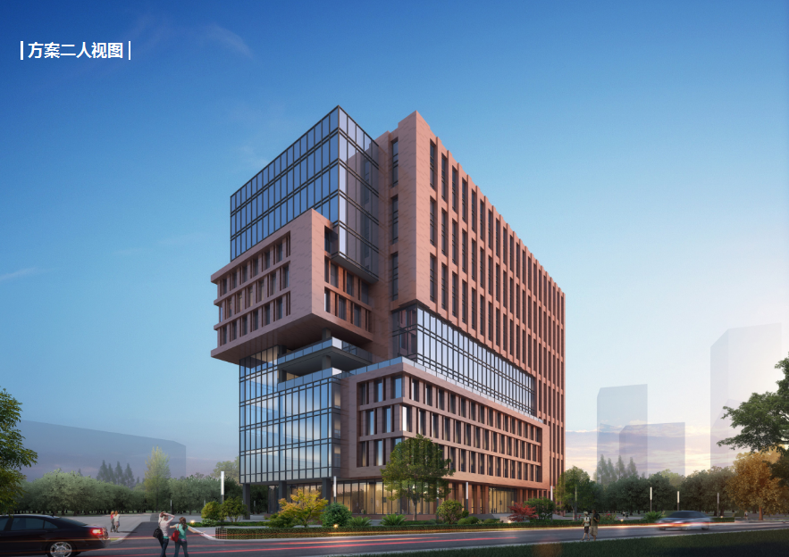 研發大樓包含科技研發企業研發辦公與教育部重點實驗室兩大功能。在此基礎上,設計以打造成尊重環境、彰顯品質、校企融合的國家級孵化平臺為目標,以服務創新創業、促進科技成果轉化、優化創業環境、培育企業家精神為宗旨,以秉承產業推動科研,科研助推產業為原則,達到校企融合、共同發展的目的。建筑空間形態上,期望延續校企融合的理念,兩大功能體塊相互咬合呈一個整體,打造出相互融合又彼此獨立的空間形體關系,同時最大化地減少交通面積,增加得房率,提高使用效率。建筑材質上,將學院與企業兩大功能在立面材料上進行區分,學院立面延續學校歷史色彩元素,采用赭石色陶板做裝飾材料來彰顯學院莊嚴沉穩的氣質,企業立面則融合新材料理念,采用灰白雙色玻璃幕墻來營造現代感和科技感。