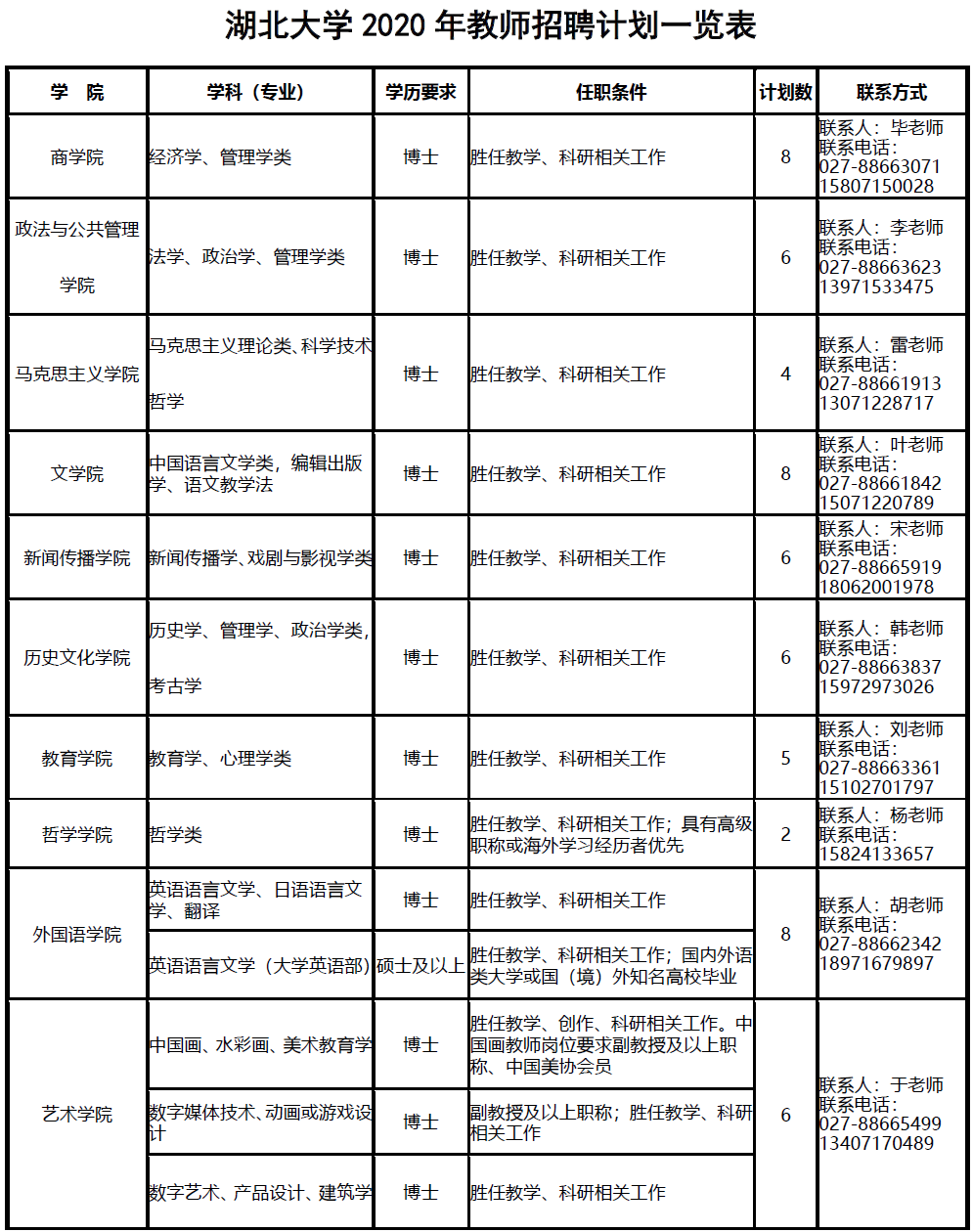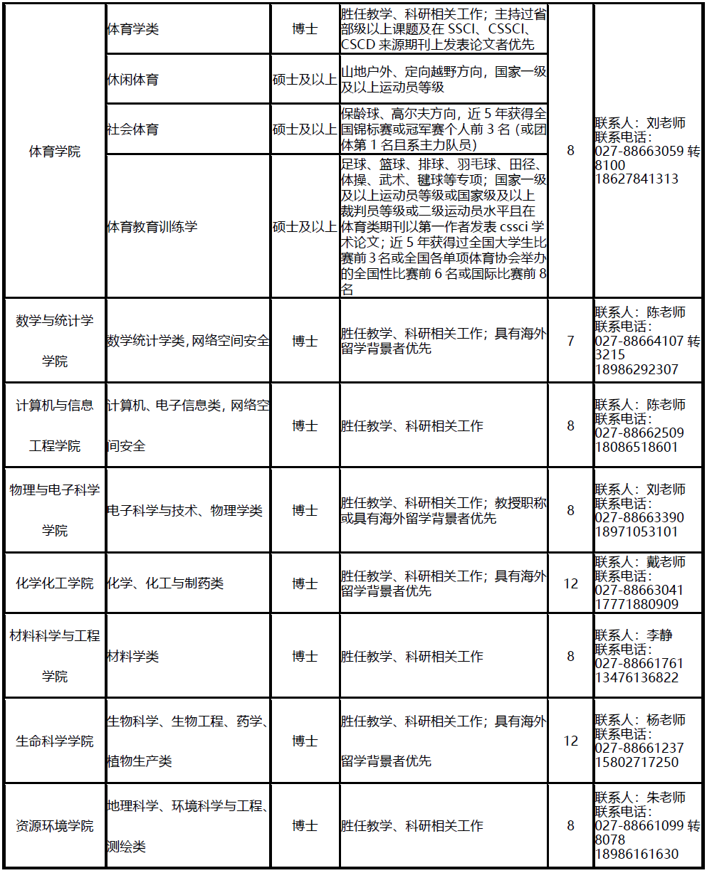 聯系電話:027-88663285(人事處)