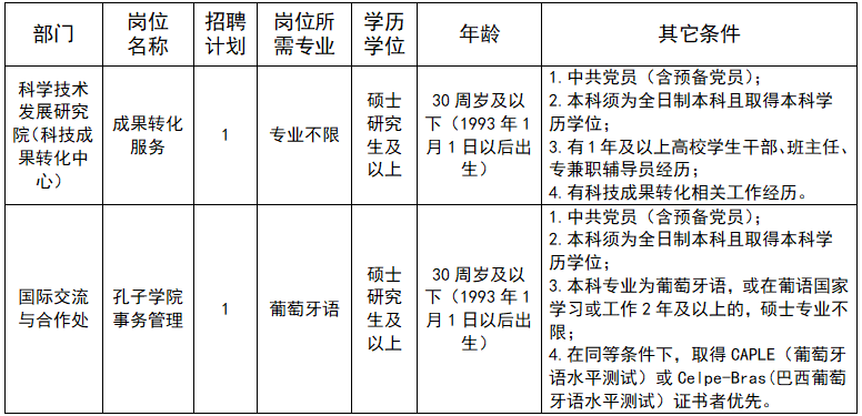 根據學校事業發展需要,現面向社會公開招聘管理崗位工作人員2人,其中科學技術發展研究院(科技成果轉化中心)1人、國際交流與合作處1人。