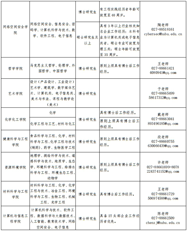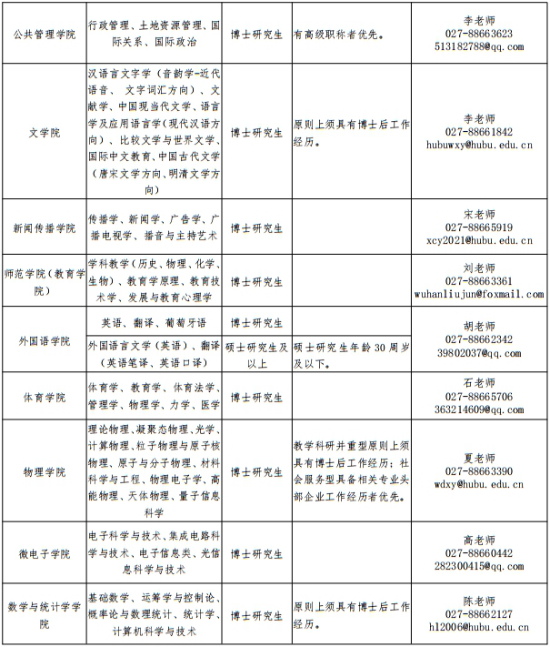聯(lián)系人:汪老師(人事處),027-88663285