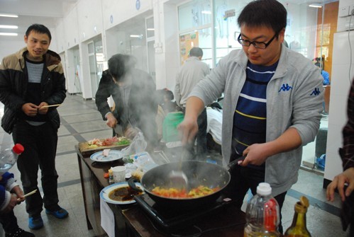 2010級電子科學與技術專業班主任熊娟感慨道,現在會做菜的男生越來越多了,細心程度毫不亞于女生。 黃辰老師則表示,現在80后夫妻基本上分擔家務,做飯自然不成問題。至于在現場百度菜譜也是為了在最短時間內求得最簡做法吧。