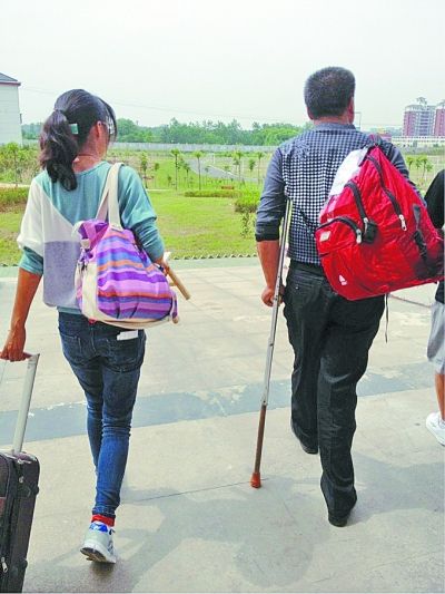 我閨女長這么大第一次出省,不送來我不放心,爸爸用一口厚重的山東話說道。爸爸名叫吳存亮,今年47歲。他說,自己去年夏天出過車禍,右腿小腿截肢,現(xiàn)在安的是假肢,走路必須借助一根拐杖。閨女快高考時(shí)我出的車禍,要不是我出事,她去年就考過來了,吳存亮說起這些,一臉愧疚。他說,好在女兒爭氣,復(fù)讀后考上了理想的學(xué)校。他們前天晚上出發(fā),坐了10個(gè)小時(shí)的車,今天凌晨就到武漢了。
