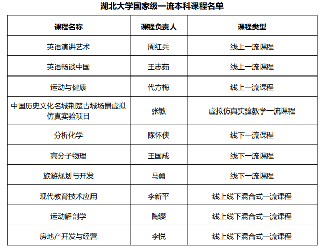 據悉,2019年10月,教育部正式發布《關于一流本科課程建設的實施意見》,目標是用三年左右時間,建成萬門左右國家級和萬門左右省級一流本科課程,即一流本科課程“雙萬計劃”。學校積極響應教育部、省教育廳關于一流課程建設的文件精神,陸續出臺《湖北大學一流本科教育實施方案3.0》《湖北大學“金課”建設實施方案》《湖北大學加強在線開放課程建設應用與管理的實施辦法》等系列文件制度,按照五類一流課程建設目標分類布局一流課程建設團隊,構建校級、省級、國家級“三位一體”的課程建設培育體系。學校充分利用網絡化、虛擬化、智能化等技術手段重塑教育教學新形態,深度推進現代信息技術與教育教學深度融合;依托教師教學發展中心開展內容豐富、形式多樣的教師培訓,引導廣大教師提高信息化教學能力。