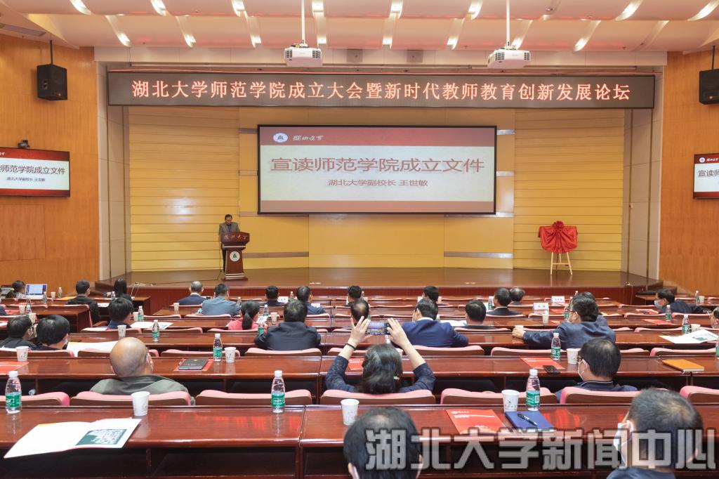為貫徹落實(shí)中央全面深化教育領(lǐng)域綜合改革部署和教育部有關(guān)文件精神,進(jìn)一步弘揚(yáng)湖北大學(xué)師范教育傳統(tǒng)優(yōu)勢,11月8日,湖大舉行師范學(xué)院成立大會(huì)暨教師教育創(chuàng)新發(fā)展論壇,湖北大學(xué)師范學(xué)院正式成立。