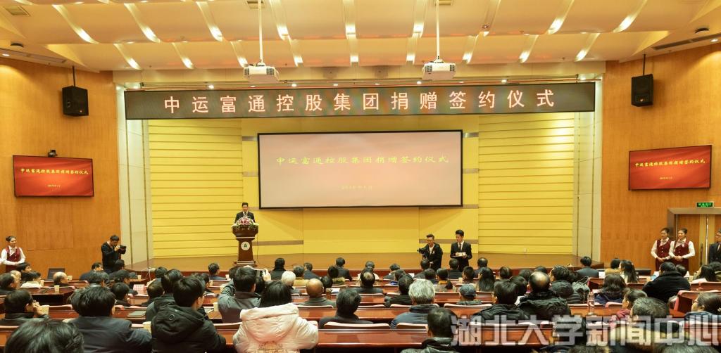 1月18日,中運(yùn)富通控股集團(tuán)董事長(zhǎng)陳清與湖北大學(xué)校長(zhǎng)謝紅星簽訂協(xié)議,中運(yùn)富通向湖北大學(xué)捐贈(zèng)1億元,助推學(xué)校事業(yè)發(fā)展,建設(shè)湖北大學(xué)中運(yùn)商學(xué)院。據(jù)悉,這是湖北大學(xué)接到的單筆最大額度的捐款。中運(yùn)富通集團(tuán)陳清董事長(zhǎng)、黃豐常務(wù)副總裁,武漢市人民政府徐洪蘭副市長(zhǎng),長(zhǎng)江新城管委會(huì)沈濤副主任,武漢市招商局翟玉峰副局長(zhǎng);我校校領(lǐng)導(dǎo)尚鋼、謝紅星、檀坤華、侯勇錢建國(guó),全校各單位主要負(fù)責(zé)人和師生代表200多人共同見證了簽約儀式。