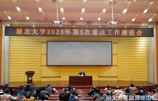 以學促干推動主題教育。按照學校學習貫徹習近平新時代中國特色社會主義思想主題教育的工作安排,4月25日,學校舉行2023年第3次重點工作推進會,聽取有關單位第二季度以來各項重點工作進展情況匯報,校領導、各單位黨政主要負責人、學生校務助理代表參加會議。