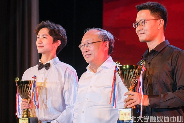 在頒獎環節,校領導謝紅星、侯勇、祝欣、檀坤華、李莉分別為獲得合唱比賽一二三等獎、優秀組織獎和最佳風尚獎的單位頒獎。